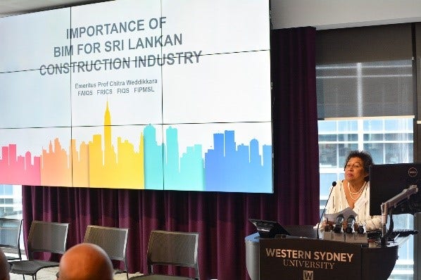 The workshop was chaired by Professor Srinath Perera who welcomed the delegates and introduced the project. Researchers from the Centre for Smart Modern Construction, Dr Robert Osei-Kyei presented international case studies on PPP projects while Dr Ali Alashwal and Amer Hijazi presented on the use of BIM. Professor Yilin Yin from Tianjin University of Technology, Dr Lei Zhou from Shanghai Dragonboat Investment Management Co., Ltd and Mr. Qian Liu, CEO of Glodon Company presented the use of BIM in China while Professor Chitra Weddikkara (past president of the Institute of Quantity Surveyors Sri Lanka) presented on the use of BIM in Sri Lanka. The c4SMC researcher Buddhini Ginigaddara delivered the vote of thanks and was the MC for the event. The WSU research team included Dr Robert Osei-Kyei, Dr Xiaohua (Sean) Jin, Dr Yingbin Feng and Ms Sadhana De Silva led by Professor Srinath Perera who was the overall Principal Investigator for the project.