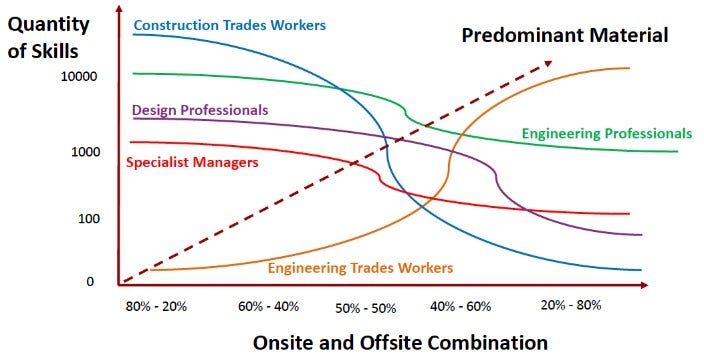 Julie shared her insights into changing models of professional practice as on-site to off-site evolved. She spoke to the continuing changes to activities and workflows, roles and responsibilities, knowledge and competencies and to relationship interfaces. The implications of these changing skills profiles, needed as more on-site goes off-site, will involve re-classification of skill profiles as the mixes of work-packaging change. Responding to these challenges is currently limited by a lack of systems perspectives across the industry and the clock-speed of education adaptation. Julie cited the growing need for more STEM based skills, data-savvy engineers and close monitoring of trends in the attrition rates of the AEC workforce to ensure younger professionals can be retained.
