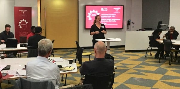 Julie’s presentation demonstrated why the c4SMC roundtable addressing the impact of on-site construction moving off-site was just “the tip of the iceberg”. This would be a challenging navigation for most academics who were bounded by the realities of today’s practices and structure. The “jigsaw” she envisioned, providing a way forward to these boundaries, needed to include not only culture-change but “an understanding of the necessary return on investment” all progressive steps need to make. Julie leads a Skills Sync project at UTS called ‘The closing the loop in University-Industry Alliance’.