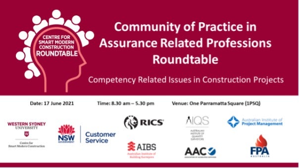 The Centre for Smart Modern Construction at Western Sydney University, under the guidance of the Office of NSW Building Commissioner (OBC) has established a Community of Practice (CoP) in Assurance Related Professions, since January 2020. The first CoP Roundtable was held on 11 June 2020 to initiate a discourse on the current and future landscape of the NSW construction industry’s professional services, with the focus on the role of Quantity Surveyors and Project Managers. Please click here for further information about the previous event.