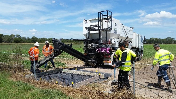 We have upscaled our CO2 Concrete production. With the success of our biosecurity platforms at Hawkesbury Farm, Western Sydney University, we made four 3m x 3m concrete slabs with our CO2 Concrete. The slabs were cast in March 2019 using our 2 innovative mix designs. The slabs are employed to support gross animal weight (about 1 ton each) for their troughs (drinking stations).