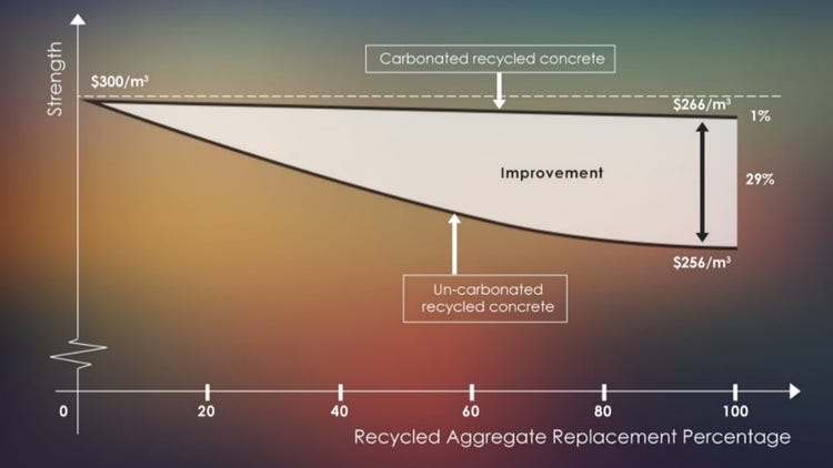 CO2 Concrete is a new process for producing durable and high-strength recycled concrete. We inject carbon dioxide into recycled aggregate to improve its bonding, and thus performance of recycled concrete.