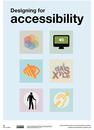 Accessible content begins in the design phase. Getting your content plan right from the start can save frustration in making amendments later on. The UK Home Office Digital, Data and Technology has a fantastic series of posters on how to design for specific needs (opens in a new window). Take a look through the posters to gain an understanding of what the content considerations are for people with Autism, Dyslexia, low or no vision, hearing loss, anxiety, physical or motor disabilities. We encourage you to print them out and keep them in mind when planning all of your content and communications.