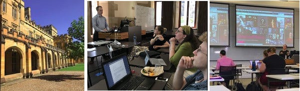 Classes at DH Downunder can take a variety of different formats. The shortest option is a single half-day class, which works out to about three hours of teaching time. The longest option is (almost) a full week - usually Monday morning and Friday afternoon will be taken up with public lectures and other activities, but you can have all the rest of the week for your class. You will almost certainly find that this greatly reduces the number of participants, as most people like to be able to attend multiple activities during the week. This can be a good thing if you prefer to teach your topic in a setting where you can give a lot of individual assistance. A compromise option is to run your class over multiple half days, e.g. four mornings or four afternoons.