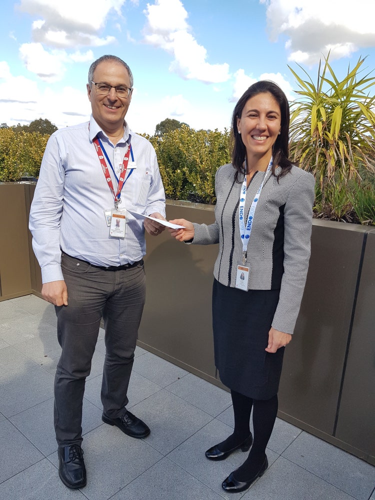 Professor David Simmons welcoming Dr Flavia Bueno to the DOMTRU team. Dr Bueno is a Senior Lecturer working on DOMTRU research and education.