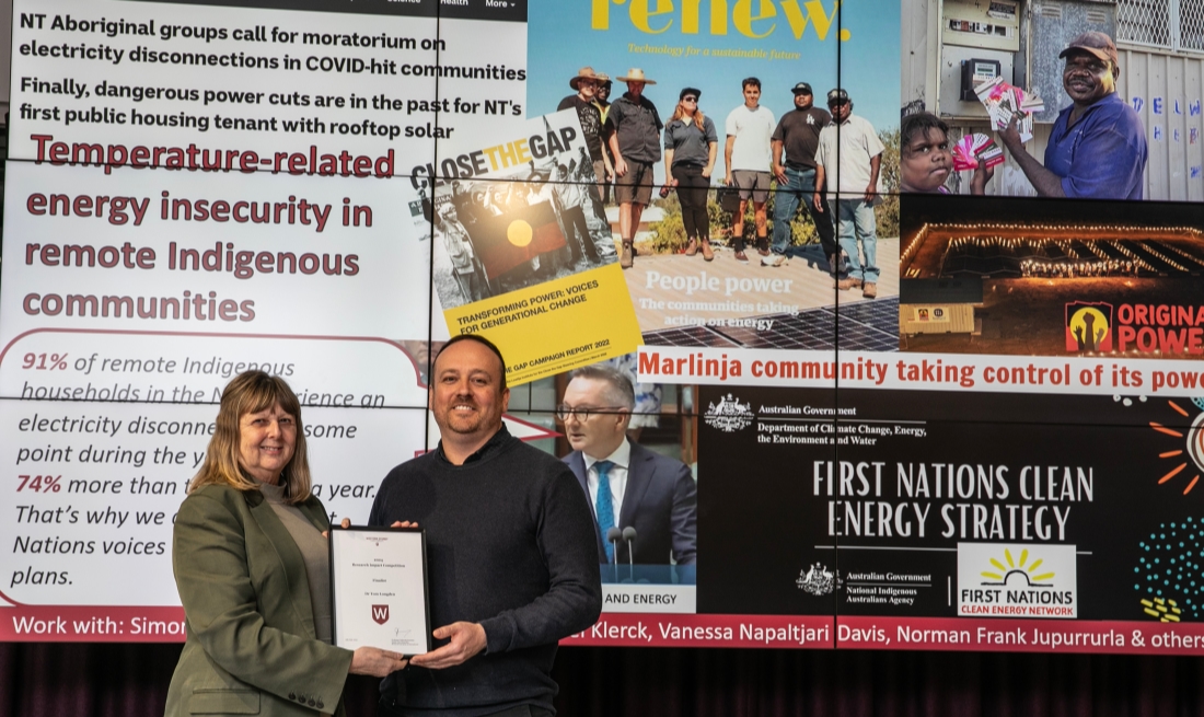 In his presentation, Dr Longden shared research findings that demonstrate the extent of energy insecurity in remote Indigenous communities. His research contributes to a project which aims to uncover the experiences of First Nations communities and people supplied by prepayment meters and find ways to ensure those households in the Northern Territory, Queensland, South Australia and Western Australia receive the same consumer protections as people on post-paid arrangements.
