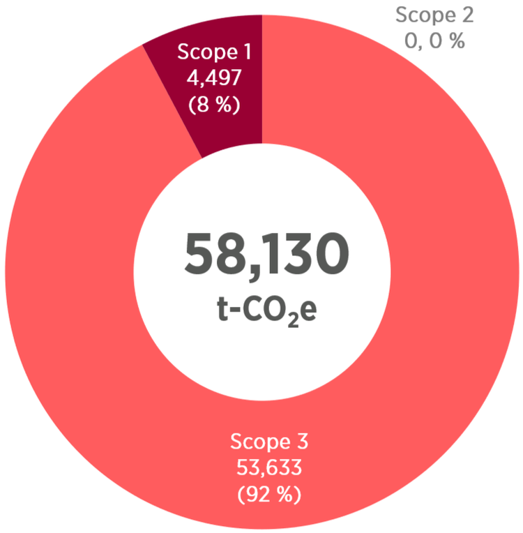 Total Greenhouse Gas emissions# for the 2024 calendar year were 58,130 tonnes of carbon dioxide equivalent (t-CO2-e) comprising: