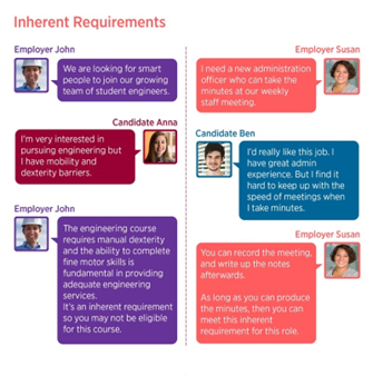 - The Australia Human Rights commission also outlines that if a person is able to perform the inherent requirements of a job and is the best person for the job, they should be offered the position.