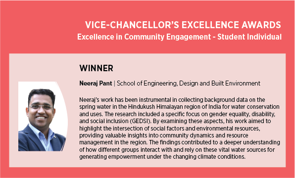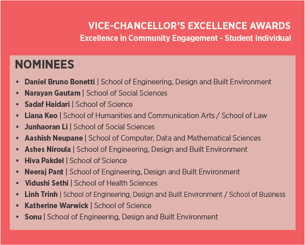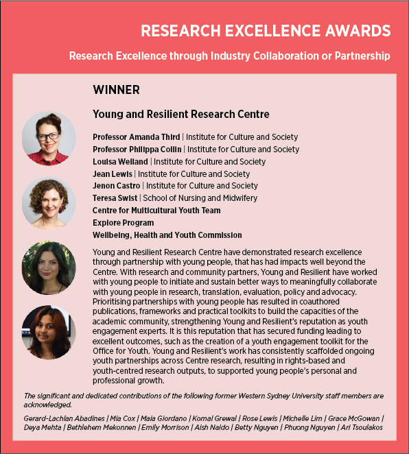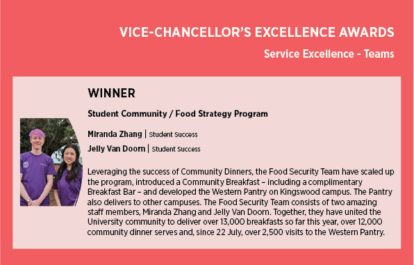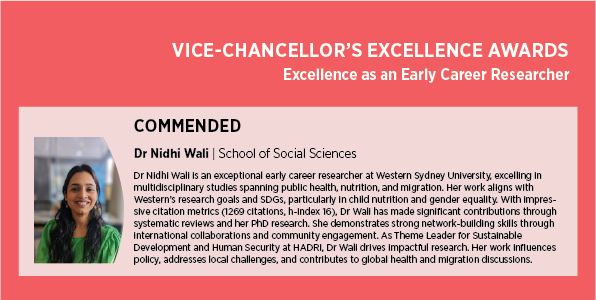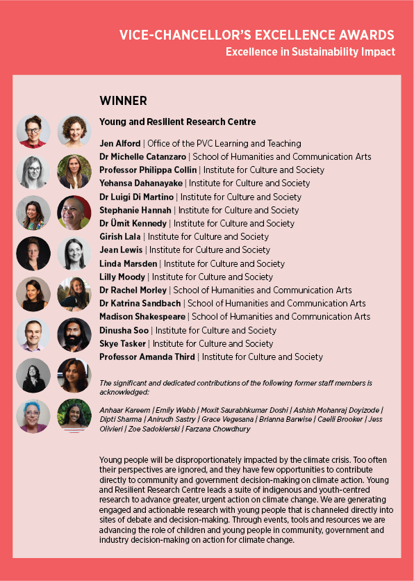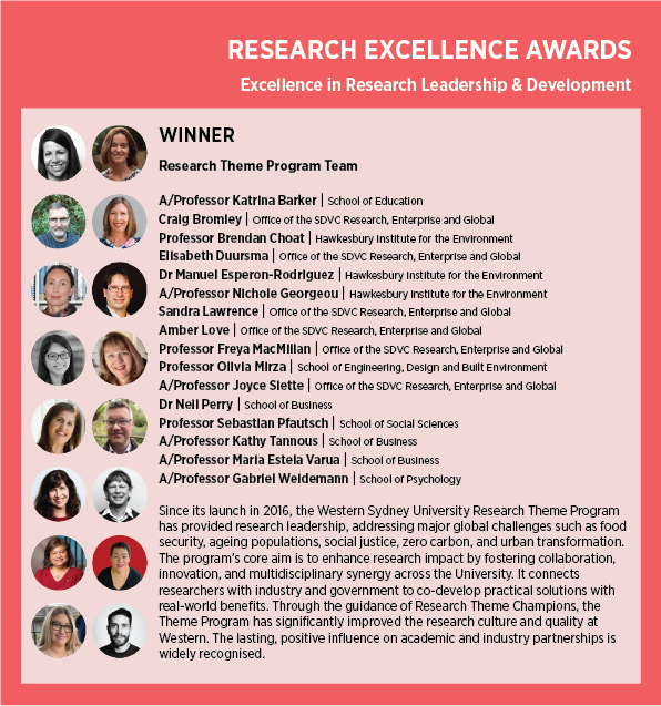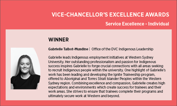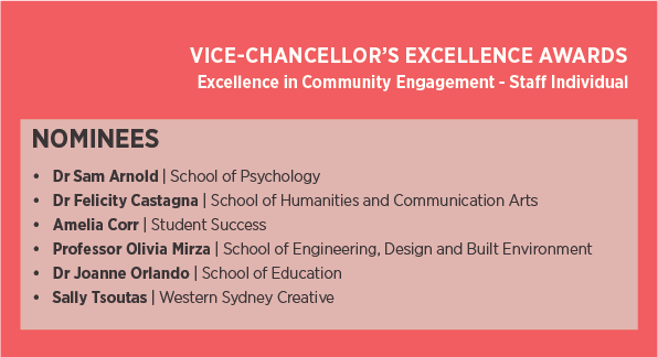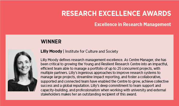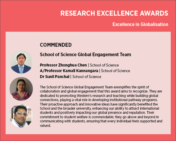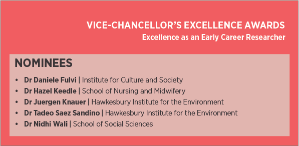 The 2024 Excellence Awards took place on Thursday, 12th December, at the Ian and Nancy Turbott Auditorium on the Parramatta South Campus. The event celebrated outstanding achievements across three key categories: the Vice-Chancellor's Excellence Awards, the Senior Deputy Vice-Chancellor Research Enterprise and Global Research Awards, and the Deputy Vice-Chancellor Education Learning and Teaching Awards. Below is the complete list of nominees and award recipients.