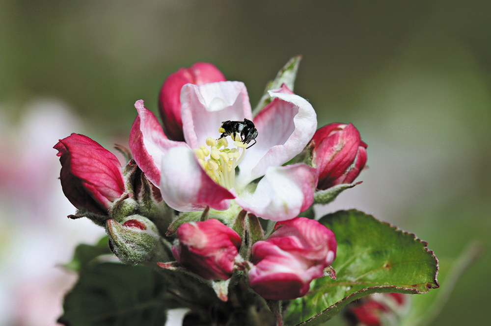 During the 2017 and 2018 springtime flowering seasons, the team identified and counted insect visitors to blossoms from the Granny Smith and Pink Lady varieties of apples in nine orchards.