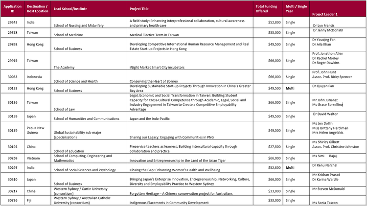 The Australian Government is providing Western Sydney University with $694,100 to support 212 students to participate in 13 mobility projects across the Indo-Pacific in 2020. Western Sydney University will also be participating in a number of consortium projects with ACICIS Study Indonesia, Curtin University, and Australian Catholic University.