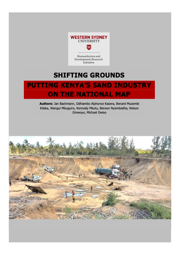 This report summarises the main findings of a three-year research project on “The politics of sand in East Africa” hosted by the University of Gothenburg, Sweden, in collaboration with United States International University (USIU) - Africa and Maseno University. The report’s aim is to provide an overview of the main challenges emerging around sand harvesting and trade in Kenya. It maps economic, social, and environmental consequences of sand harvesting across different regions and ecosystems in Kenya, explores both formal and informal governance dynamics of sand harvesting and trade and finally formulates recommendations for a fairer and more sustainable way of harvesting and trading sand in Kenya.