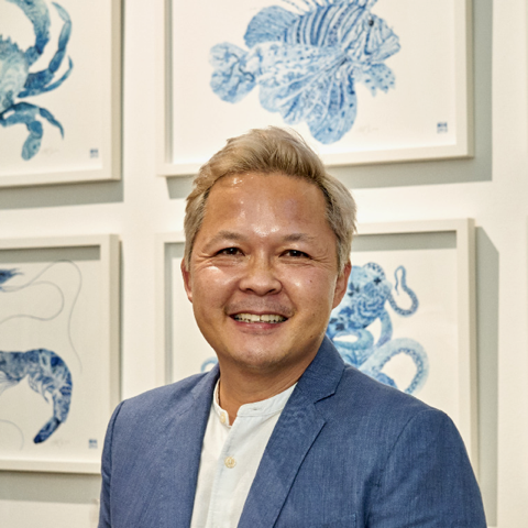 Chris Chun is one of Australia’s leading textile designers known for his work in contemporary chinoiserie, a distinctly modern twist on traditional Chinese art that combines vibrant colour and pattern with his love of nature and the environment. His work draws inspiration from his Chinese and Australian heritage, often incorporating elements such as flowers and birds, and feature intricate patterns that create a sense of movement and energy. Chun's paintings explore themes related to identity, memory, and cultural heritage, and he uses a variety of painting techniques to create his unique, distinctive style.