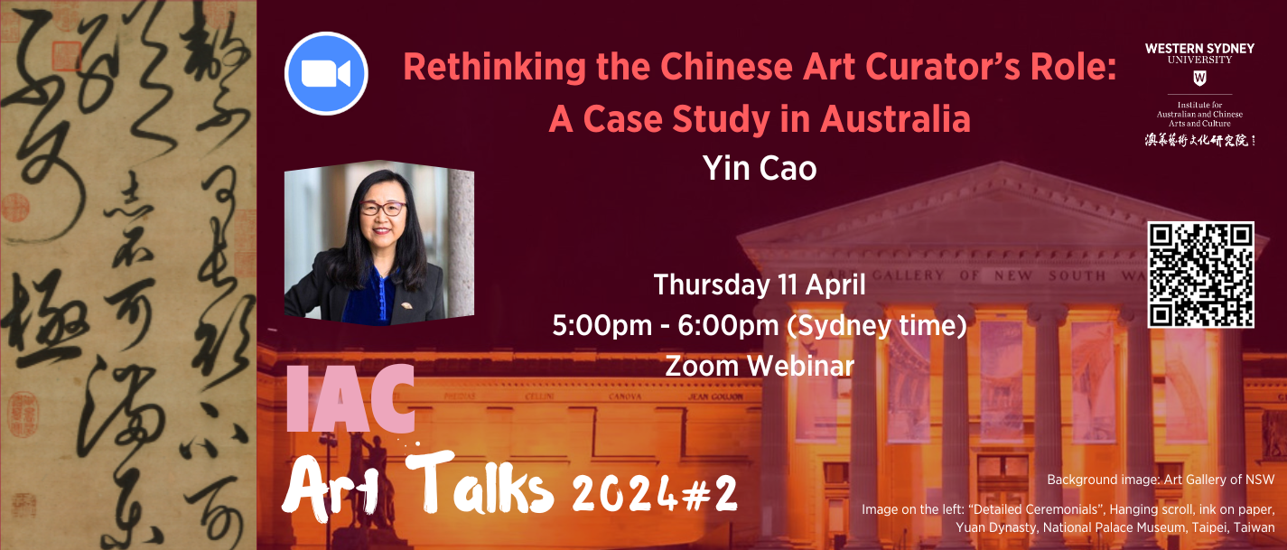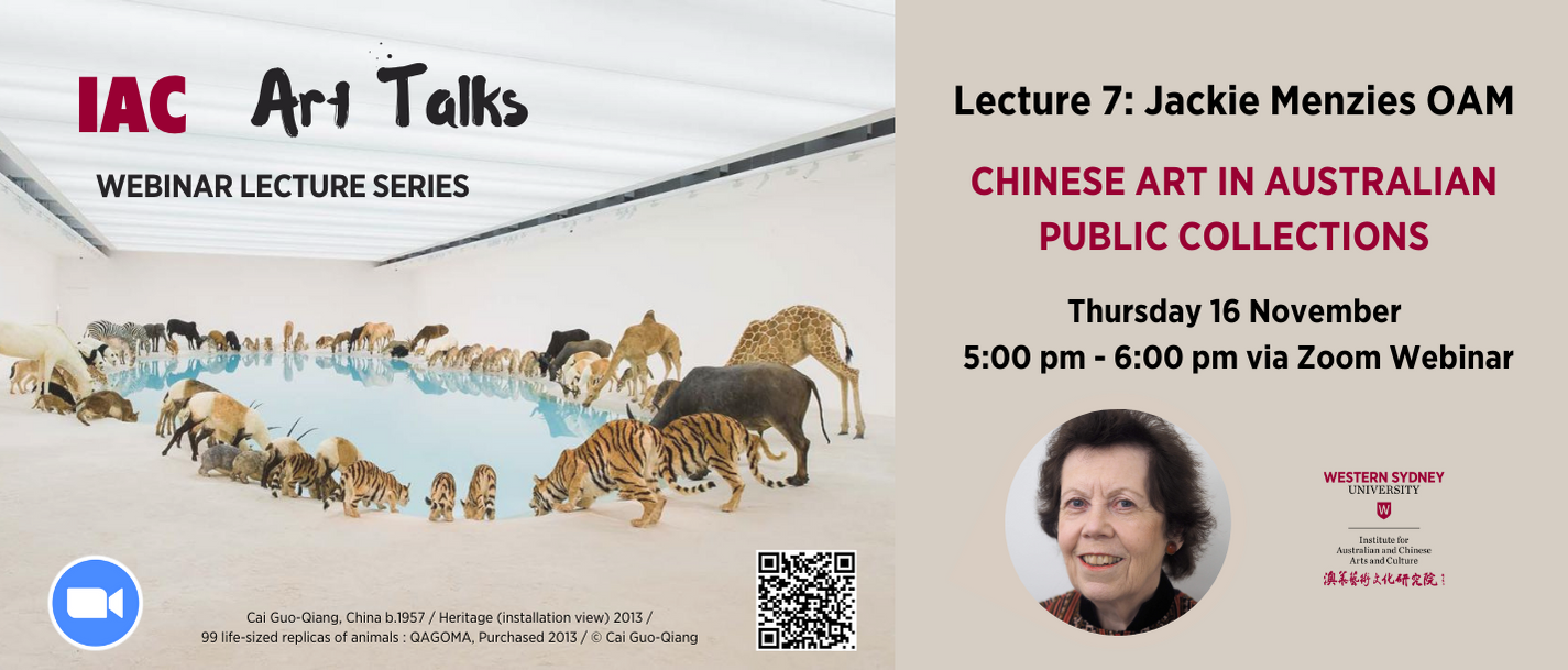 IAC is excited to launch our 2023 new lecture series called Art Talks. Art Talks aims to explore and to present traditions and forms of Chinese art and the influence of Chinese art on various new or renewed forms and styles of art in Australia, mainland China, Taiwan, Hong Kong and around Asia Pacific. The series will reflect many different viewpoints and cover a wide range of expertise. It will showcase contemporary Chinese art as well as look at traditional painting practices that began centuries ago. A particular focus will be on the emergence of Chinese art in Australia and integrated Chinese art produced by Australian artists of Chinese / Asian heritage who feel a connection to their ancestral roots while being deeply influenced by their lives here. Art Talks will shine a spotlight on cross-fertilisation of ideas, influences and artistic practices that converge to create a uniquely Australian-Chinese genre. Invited speakers include artists, art historians, academics, curators, art experts and influential gallery owners and collectors. Art Talks series will be held on a monthly basis and on Zoom Webinar to be accessible to local, interstate and international audiences. The edited recording of each lecture will be posted on the IAC website and made accessible on online platforms.