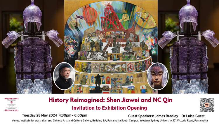 This exhibition brings together two outstanding artists of different backgrounds, using different mediums, to show their fascinating and intriguing representations and explorations of history in their artistic creations. NC Qin, a young and successful artist specialising in glass sculpture and conceptual art, is first-generation Australian-born Chinese. Her artistic pursuit is intertwined with her identity formation. Embracing her Chinese heritage, she also interrogates and explores the hidden burden of cultural heritage within the Asian diaspora. Shen Jiawei, one of Australia’s best known master portraitists, but his lifelong interest and artistic pursuit are history painting, particularly large-scale history paintings, to capture history’s depth and complexity. This exhibition shows for the first time ever a print of Shen’s masterpiece, "The Tower of Babel" (2023), an epic artwork 20 years in the making that recreates an alternative art history of the 20th century by tracing the biggest movement of all: the International Communist Movement.