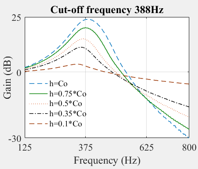 FIG. SuppPub1 shows the dependence of the BM response on the value of h. When h=c0 =sin (2πfc/fs), there is a half-octave distance between the pole and zero. Here, fc is the characteristic frequency of each section of the cascade and fs is the sampling frequency. In our simulations, we set the values of fs to 16 kHz and fc is determined by the Greenwood function (Greenwood, 1961) to map 25 channels from 125Hz to 3kHz. We set the upper-frequency limit at 3kHz because most SID cues, such as the speaker’s fundamental frequency, pitch, and formants (f1 and f2), are below this frequency (Stemple, Roy, & Klaben, 2018).