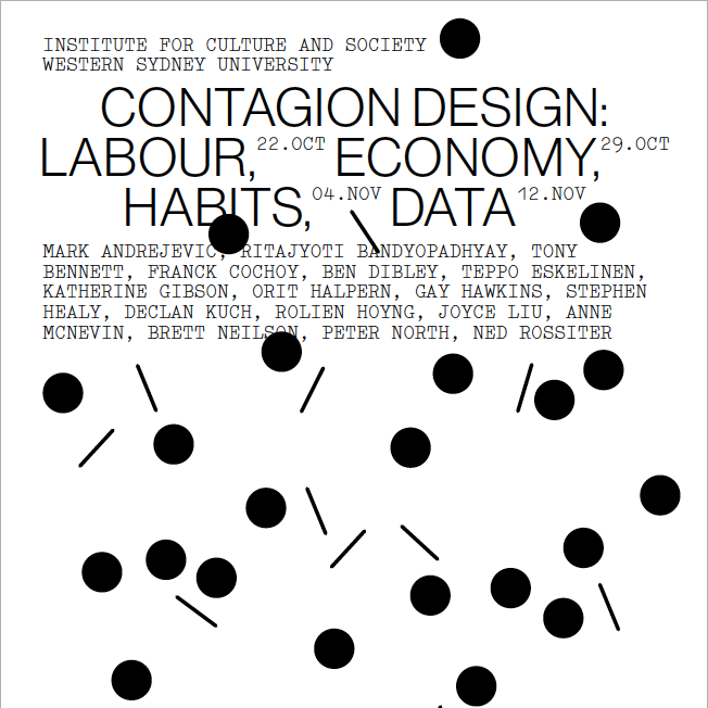 How is contagion designed? How do labour, migration, habits and data configure contagion? Across a program of four weeks of discussion and debate, this event explored the current conjuncture through these vectors to address issues of rising unemployment, restricted movement, increasing governance of populations through data systems and the compulsory redesign of habits.