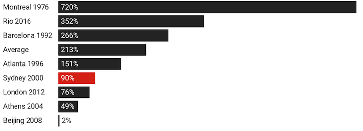 Cost overruns at the Summer Olympics since 1976