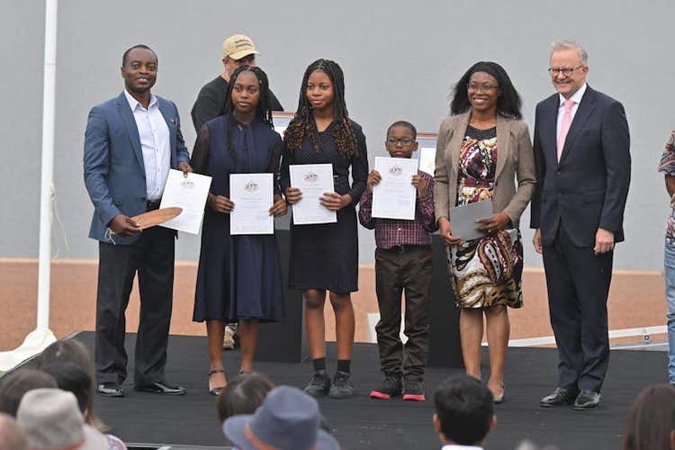 A citizenship ceremony on Australia Day, 2025. 77% of migrants become citizens and eligible to vote after living here a decade or longer. Mick Tsikas/AAP