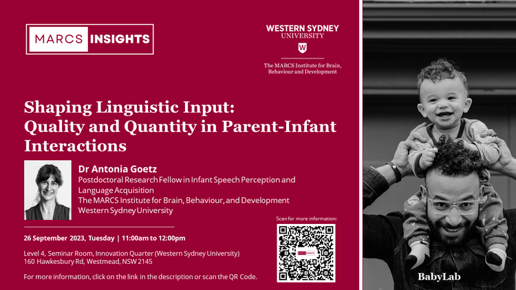 | Event Name | MARCS Insight Series: Shaping Linguistic Input: Quality and Quantity in Parent-Infant Interactions |