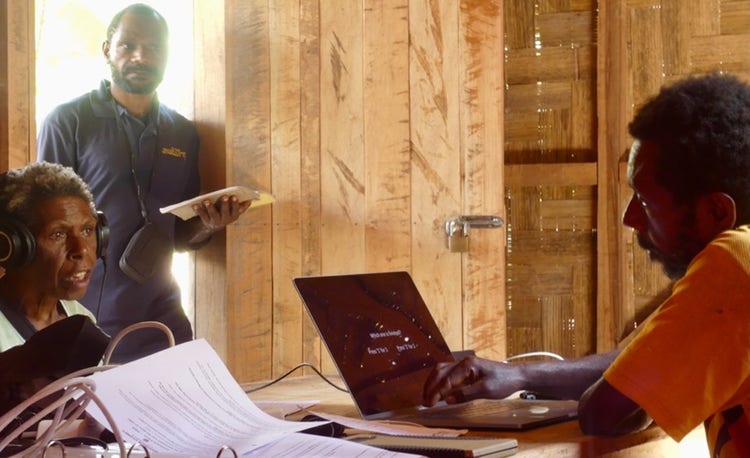 (Left) Music cognition field experiments in the Uruwa River Valley, Papua New Guinea. Research conducted by Milne, Smit, Sarvasy, and members of the local community.