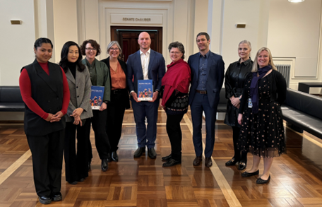 Image: Senator David Pocock with the report co-authors and panel speakers