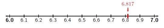 Answer: From the number line above we can see that $6.817$ is closer to $6.8$ than to $6.9$, so the answer is $6.8$. -