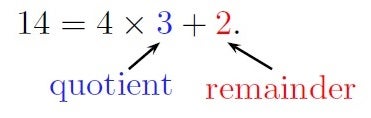 - What is the quotient and the remainder when $14$ is divided by $4$?