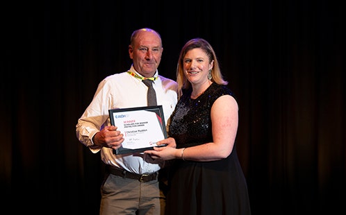 Christian Madden receives his award from Jackii Shepherd, Director, Safe Work Australia