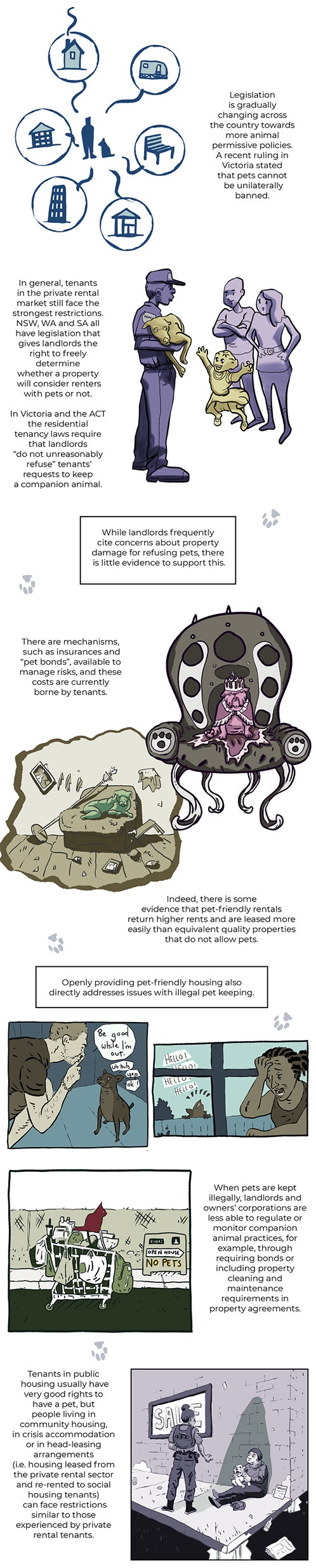 Six housing experts spanning five Australian universities undertook the study of animal-inclusive housing and options for reform, the first of its kind internationally. It assesses state and territory housing and legislative reforms in the private rental sector, social housing, homelessness services, strata title, aged care and caravan parks. Here they explain what they found.