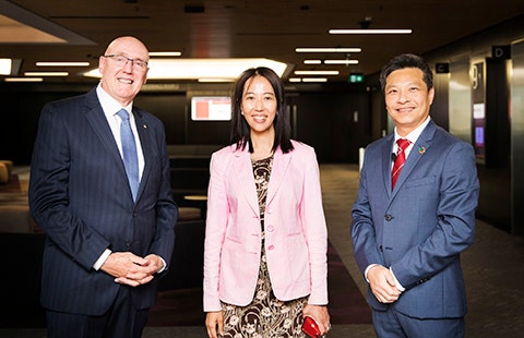 Special guests included The Hon Dr Geoffrey Lee, Minister for Skills and Tertiary Education, NSW Government; Ms Andrea Myles, Investment NSW, NSW Government; Councillor Robert Kok, Lord Mayor Representative, City of Sydney; Mr Qiongfei Zhao, Education Bureau of the People's Government of Guangzhou Municipality; Professor Qu Shaobing, Chairman of the University Council, Guangzhou University; Ms Josephine Lam, Managing Director, A.C.E Entrepreneur Platform; and Professor Yi-Chen Lan, Pro Vice-Chancellor, Global Development, Western Sydney University.