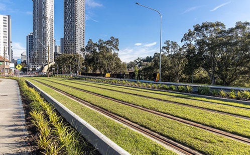The initiative forms part of the NSW Government’s $2.8 billion Stage 1 Parramatta Light Rail project, which will see 1.3 kilometres of green track installed across three sections of the alignment: Parramatta’s Robin Thomas Reserve and Tramway Avenue, as well as the Cumberland Precinct.