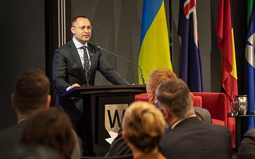 Ambassador of Ukraine to Australia, His Excellency Mr Vasyl Myroshnychenko addressing the forum