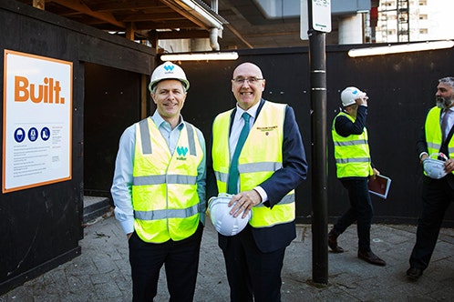 Federal Minister for Education, the Hon Jason Clare MP, and Western Sydney University Vice-Chancellor and President, Professor Barney Glover AO, at the Bankstown City campus site in the heart of the Bankstown CBD.