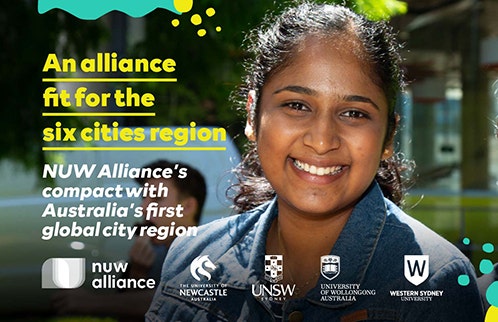 The NUW Alliance is a grouping of four leading Australian universities, The University of Newcastle, the University of Wollongong, UNSW Sydney and Western Sydney University.