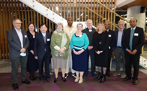 Newly appointed Distinguished Professors with members of the existing cohort at the University’s annual Professorial Dinner. They are pictured here with Deputy Vice-Chancellor and Vice President (Research, Enterprise and International) Professor Deborah Sweeney