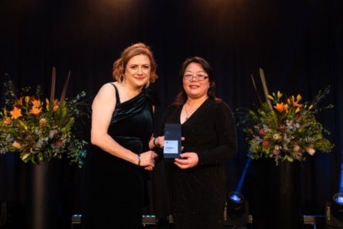 Winner of the 'Brilliant People - Collaborative Culture Leadership' Award, Professor Sarah Zhang (right) pictured with Defence Chief Scientist, Professor Tanya Monro.
