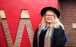 Dr Olivieri is a Western Sydney University alumnus, having graduated with a Bachelor of Arts. She also studied at the Piet [pie-et] Zwart [zw-ah-rt] Institute in the Netherlands. She received a PhD from the University of Sydney for her work focused on the intersections of visual art, performance, dance and theatre within a community context.