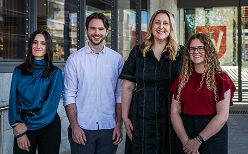 Clinical psychology student, Nicola Lopino; Honours student, Jack Parry; The Hon Emma McBride MP; and Professional psychology graduate, Emily Dunn