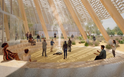 The Indigenous Centre of Excellence will target a 6-star Green Star rating and feature a mass timber structure using Australian hardwoods. It prioritises Indigenous and Country-focused materials and suppliers with the facade to be constructed using clay sourced directly from Country.