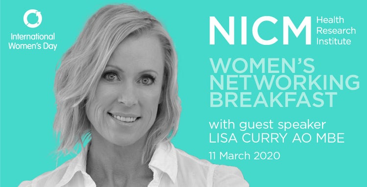 In the spirit of celebrating International Women’s Day and in conjunction with NICM Health Research Institute's inaugural Influential Women in Natural Therapies Symposium, join us at our first Women’s Networking Breakfast with guest speaker Lisa Curry AO MBE on Wednesday 11 March 2020. Lisa is one of Australia’s most sought after speakers and carries out many speaking engagements and personal appearances both nationally and internationally, drawing on her vast experience as a Commonwealth Games and Olympic competitor for Australia. She is undoubtedly one of Australia's most popular personalities, with a unique and powerful message about weight loss, regaining your health, discipline, determination and getting the best out of people. MC'd by Western Sydney University Deputy Vice-Chancellor and Vice President (Research and Innovation) Professor Deborah Sweeney, Lisa will share her candid insights and experiences from her health journey, including her use of natural therapies, and the room and a need for both conventional and integrative medicine. Kick-start your day feeling inspired and energised with one of Australia’s greatest female athletes. This breakfast event is proudly presented by NICM Health Research Institute, Western Sydney University, and the Jacka Foundation of Natural Therapies. Download the flyer (PDF, 589.74 KB)(opens in a new window) Program