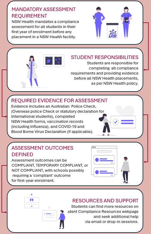 Any Western student who needs to complete a placement experience in any NSW Health facility must follow the student compliance process.