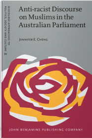 Cheng, Jennifer E. (2017), Anti-racist Discourse on Muslims in the Australian Parliament, John Benjamins, Amsterdam. Abstract: Anti-racist Discourse on Muslims in the Australian Parliament examines anti-racist discourse in contemporary Australian politics, in particular, how politicians contest and challenge racism against a minority group that does not constitute a traditional ‘race’. Using critical discourse analysis, this book firstly deconstructs the racist, xenophobic and discriminatory arguments against Muslims. Secondly, it highlights the anti-racist counter-discourse to these arguments. Since blatantly racist statements are less common nowadays, the book focuses on manifestations of ‘culturalist racism’. It does this by investigating how talk about Muslims positions them as not Australian or as not belonging to Australia – the book takes such ‘discursive exclusion from the nation’ as one of the most widespread forms of ‘culturalist racism’ in Western liberal-democracies. In addition to contributing to the theoretical discussion on the relationship between Muslims, racism and anti-racism, the book expands on methods that apply critical discourse analysis and the discourse-historical approach by providing a practical guide to analysing anti-racist political discourses. |