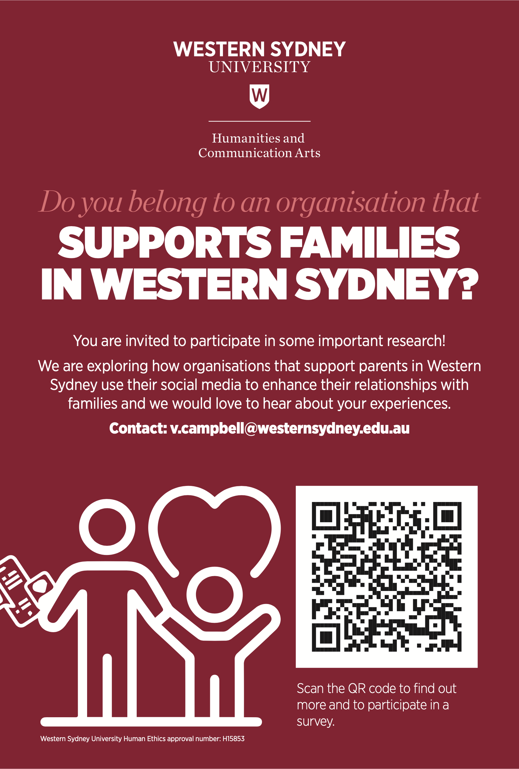 To participate in the survey, click on the image above, scan the QR code or go to: https://surveyswesternsydney.au1.qualtrics.com/jfe/form/SV_8bTWMQb7vuTXFDU