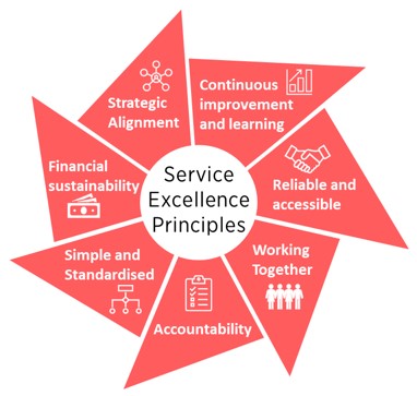 The Enterprise Service Management guiding principles have been developed to assist and influence services when making decisions and changes around service delivery and improvement. The principles are designed to help the organisation foster and embed a service culture, increase staff engagement and promote quality service delivery partnerships. They set the standard for service at Western, promoting our organisational values. Our enterprise service management guiding principles are organised in three categories: service excellence principles, service design principles and service capability principles.