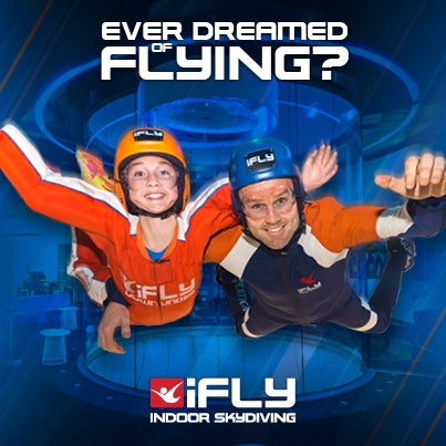 Whether you’re 3 or 103, iFLY Indoor Skydiving is not just a thrill ride, but is the latest thing in action sports. To indoor skydive, you simply lean forward inside the giant glass tunnel and a column of air lifts you effortlessly into flight, guided by a qualified instructors. There's no parachute,