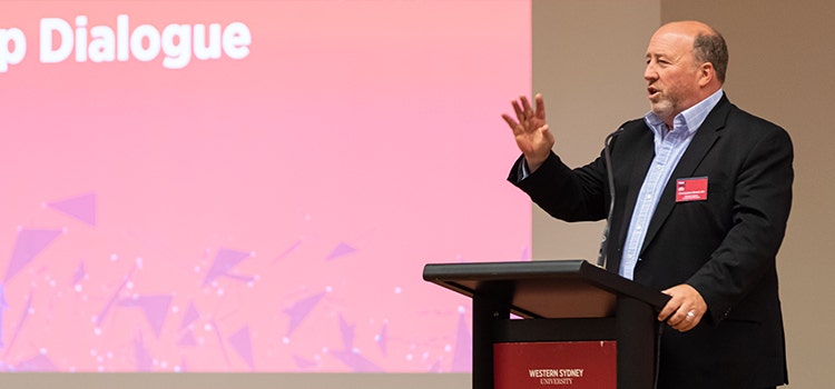 Our Ignite session speakers: Dr Karen Hutchings (MARCS), Tom Nance and Chris Brown (Western Sydney Community Forum), John Greig, Vanessa Campbell (Vanessa Campbell Consulting and WSU Sessional Academic), Inu Rana (Launch Pad) and Dr Roger Dawkins (HCA)