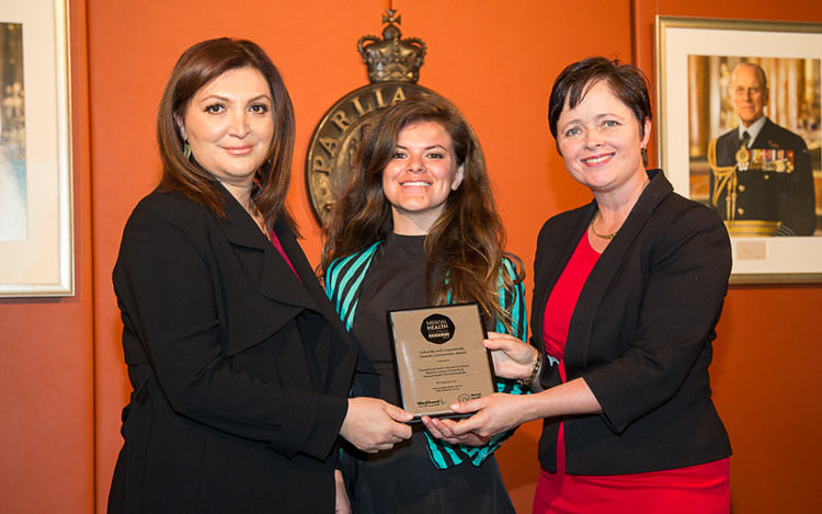 Pictured above, Gabriela Uribe (centre) and Dr Shameran Slewa-Younan (left) are being presented with the 2017 Mental Health Matters Award by the NSW Minister for Mental Health, the Hon Tanya Davies (source: WayAhead).
