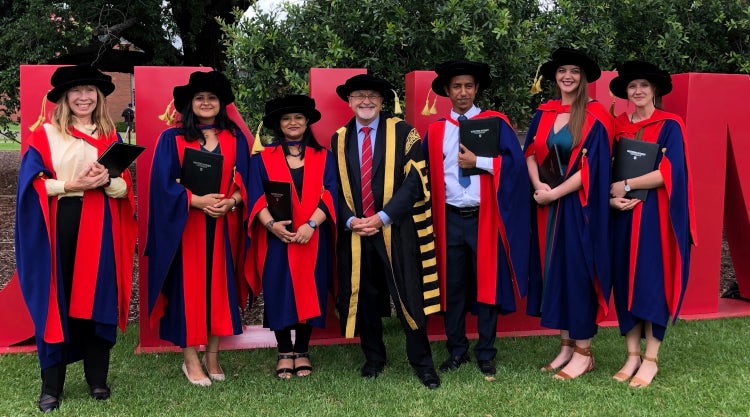 Congratulations to the seven THRI PhD candidates who graduated in December: Rachel Westcott, Priyanka Thapliyal, Sabrina Naz, Zelalem Mengesha, Alex Hawkey, Zoi Triandafilidis and Maria Gabriela Uribe Guajardo, photographed with Professor Peter Shergold, Chancellor of Western Sydney University.