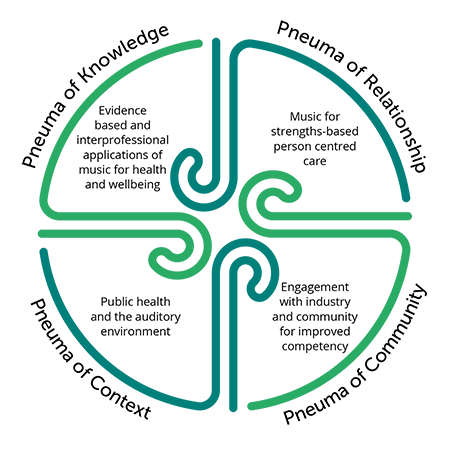 The Pneuma Network connects researchers from disciplines such as music therapy, music psychology, nursing, social work, medicine and health promotion with health and education industry needs which service the community and help individuals as part of invigorating further research and practice.